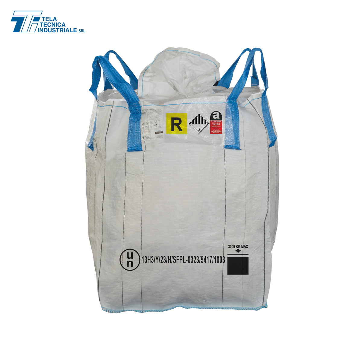Big Bag tubolare omologato ONU 13H3/Y per AMIANTO – etichetta R + ADR9 + A – 90x90x120 con caramella superiore e fondo chiuso – 1000 kg